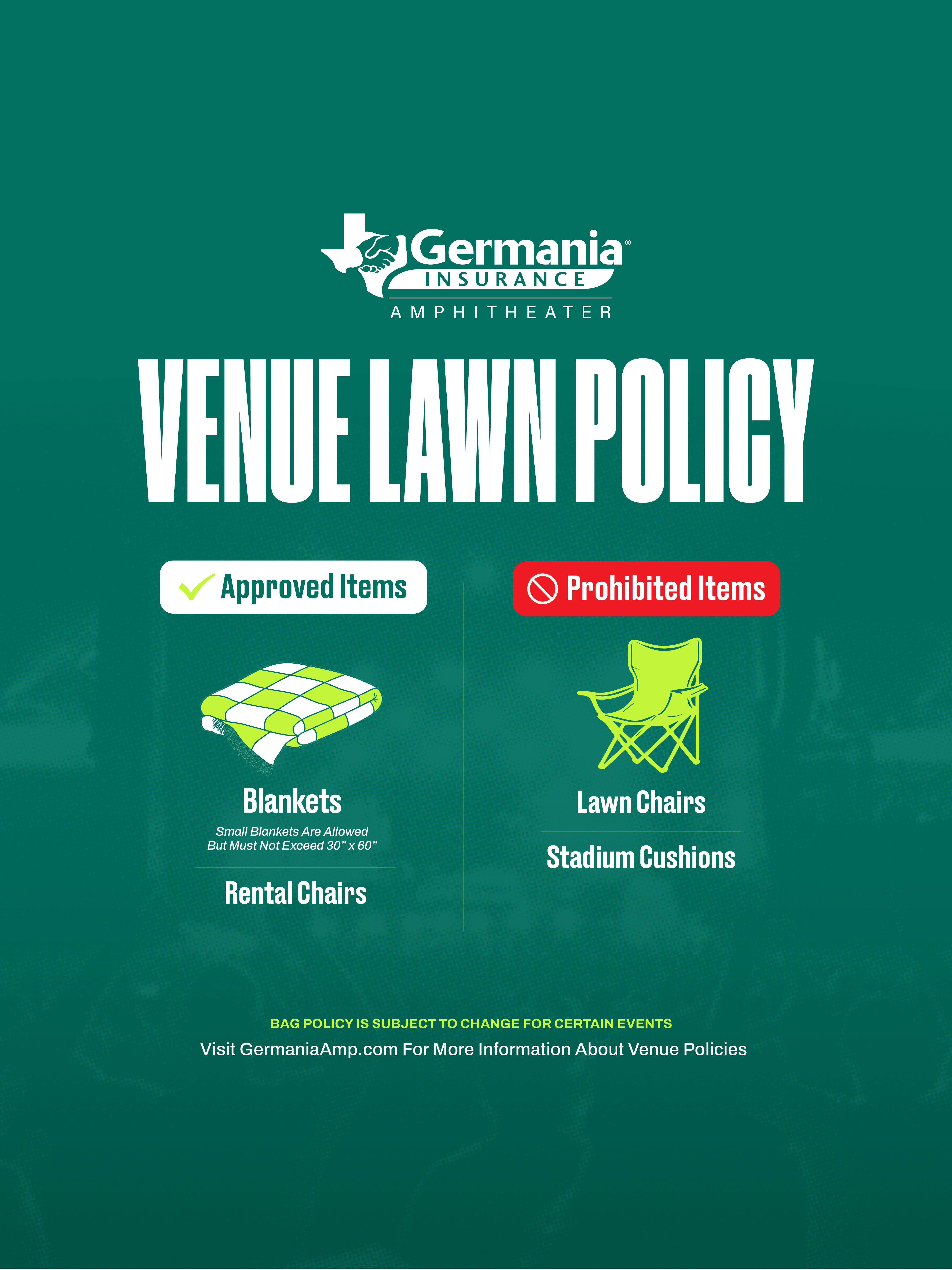 During high volume shows, event staff reserves the right to consolidate space and relocate parties to ensure there is ample space for all lawn patrons.